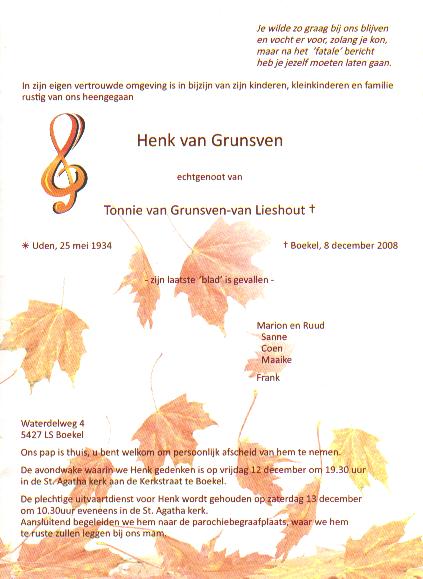 NIEUWS 200810-12-2008Onze basblazer Henk van Grunsven overledenMaandag avond 8 december is Henk overleden.